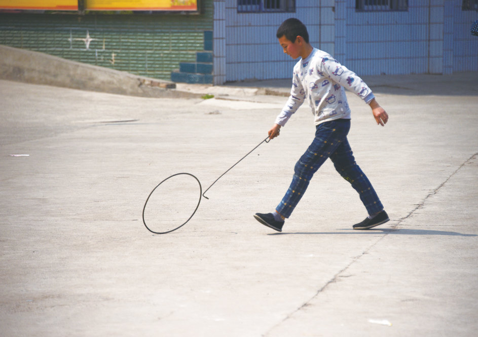 童谣中“滚铁环”的游戏,是四川民间点击率很高的,至今在很多地方都可见。耍法和形式都不用介绍,众人皆知。是什么时候诞生的呢?现在已无从考据,但在四川出土的汉画像砖石《孔子拜老子》途中,项橐手推一玩具,就已经与滚铁环相似了。而骑马马,在民间倒不是说骑真马,孩子们经常玩的,是“骑竹马”的游戏。用一根不到两米长不等的竹竿或木棍骑于胯下,一端于身后与地摩擦,一端置于胸前。小孩两手紧握胸前一端,模仿大人骑马向前走。至于耍大刀,也就是男孩子们用木质的像刀一样的玩意,比比划划,就像今天的cosplay般,变身他们心目中的英雄。