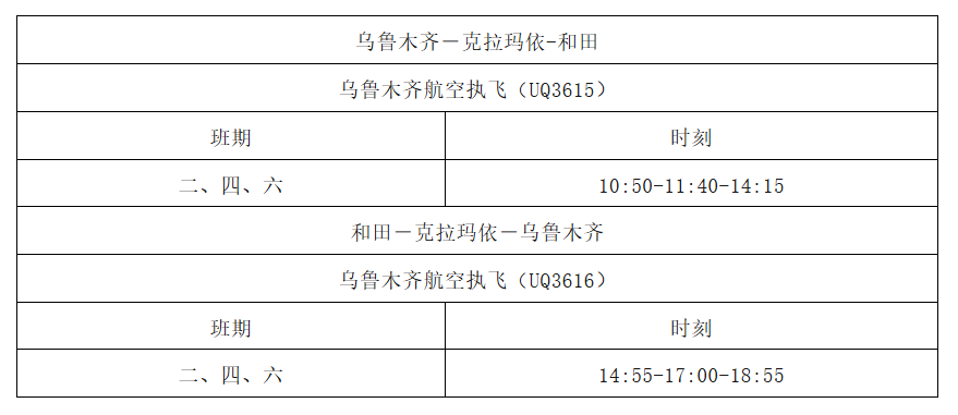 “和田—克拉玛依—乌鲁木齐”往返航线