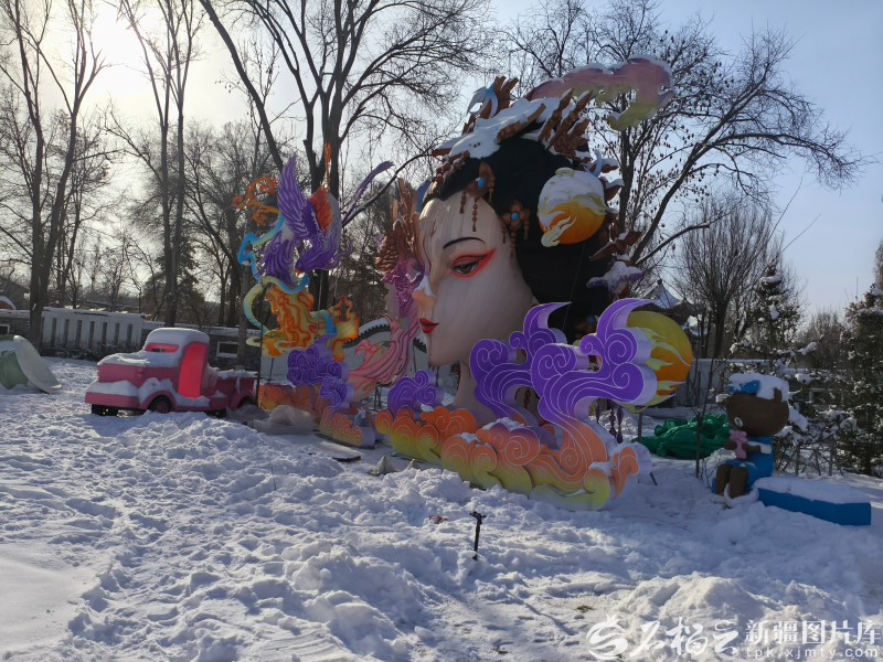 12月16日,乌鲁木齐市植物园打造的朱雀女神造型。