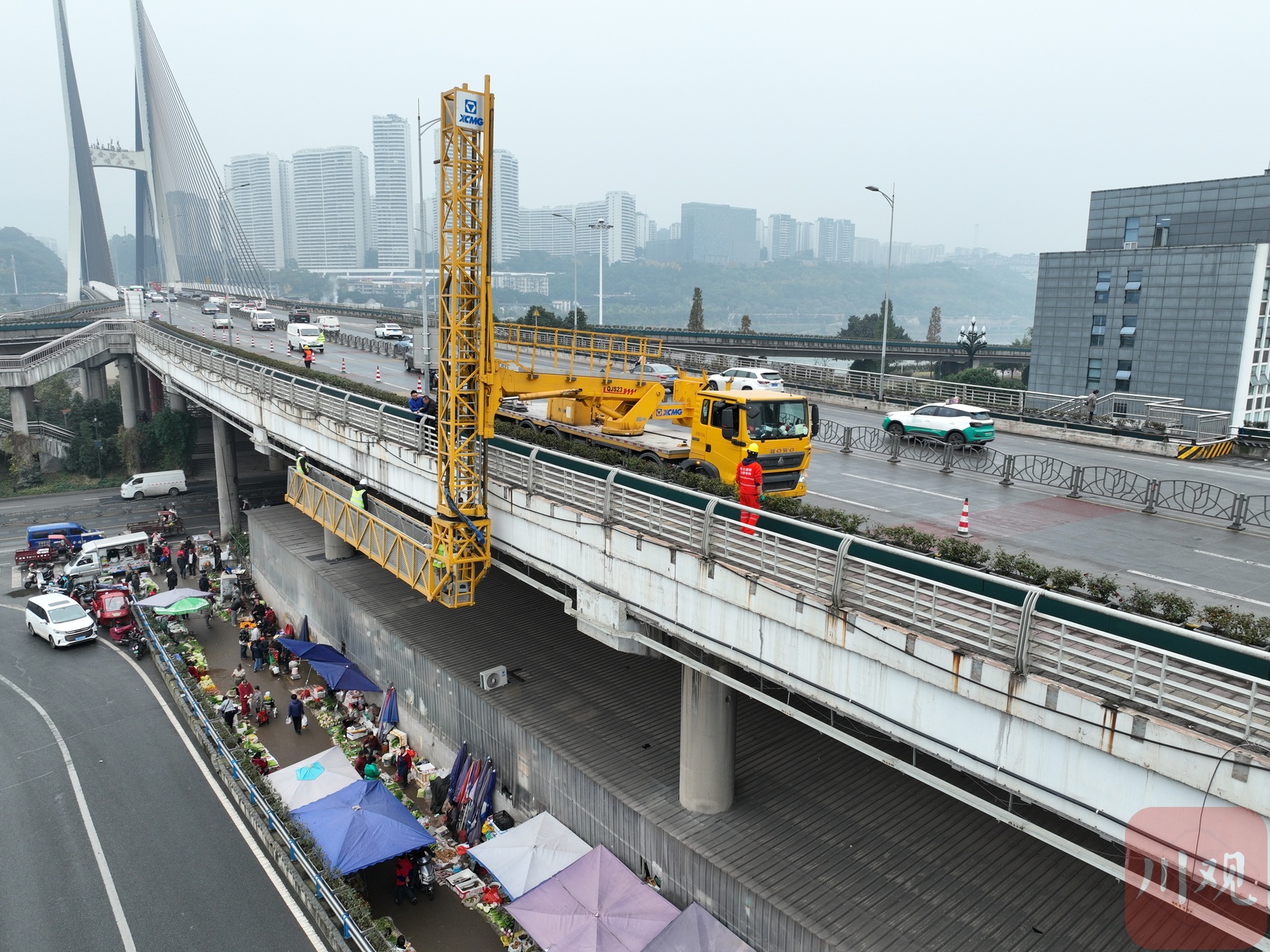 “‘功臣’是这台行走式检修车!”四川路桥桥梁公司特种工程分公司宜宾桥隧管养中心(以下简称桥隧管养中心)现场技术负责人周宽揭秘。