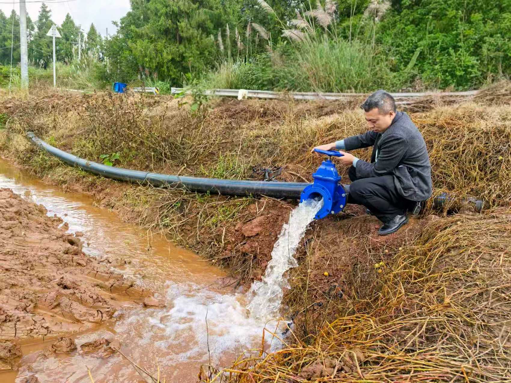 在清流镇长新村,村党支部书记邓楚杨正在灌溉农田。潘政吉 摄