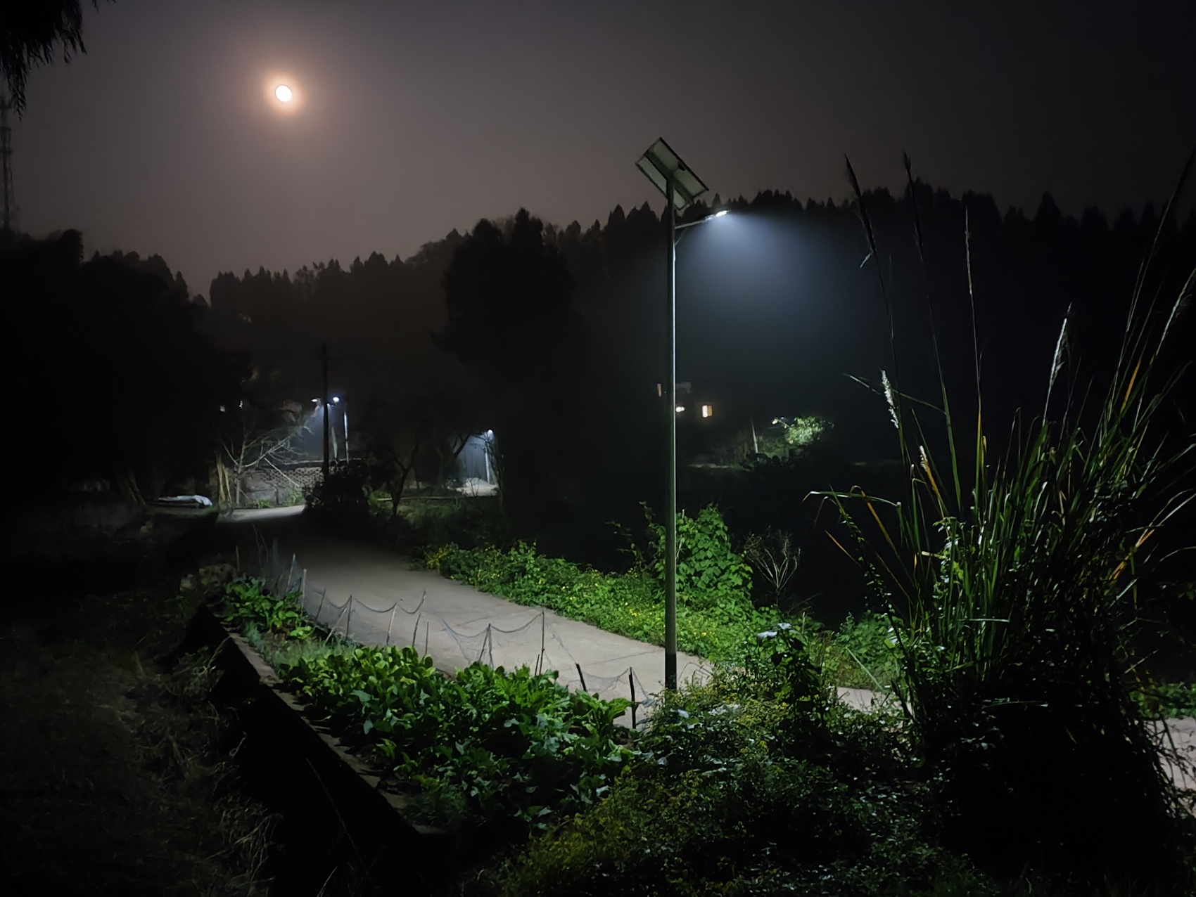 在天林镇高峰社区,居民们用积分换来的太阳能路灯。刘小军 摄