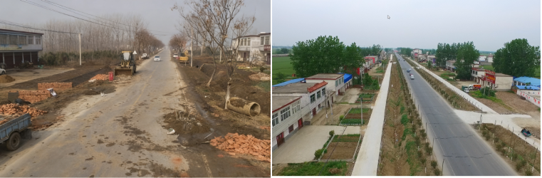 穿村镇路段的“路宅不分”,是平原公路最突出的安全痛点。G230驻马店段沿线7个乡镇,部分路段房屋紧邻公路,村民横穿马路、车辆占道停放等问题频发。对此,项目创新性地将公路改造与“美丽乡村”建设、人居环境治理相结合,以“路长制”为抓手,联合属地政府、环保、水利等部门推进路宅分离改造。