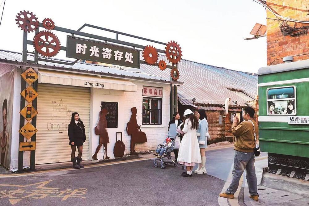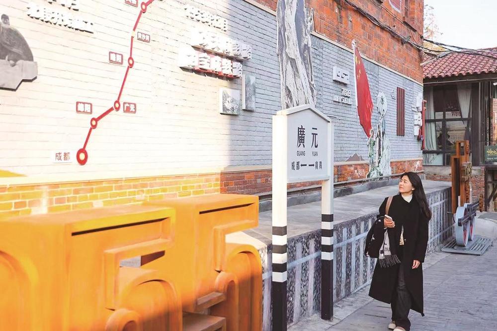 宝成铁路修建的时间展示墙前,一群青年正用镜头记录拍照。陕西游客李攀特意来感受这段历史,走过建站时间墙,透过火车座位的车窗,触摸20世纪70年代的广元河街、千佛崖、明月峡。她开心地说:“我喜欢这里的复古建筑和人文风情,明天还要去千佛崖感受千年文化。”