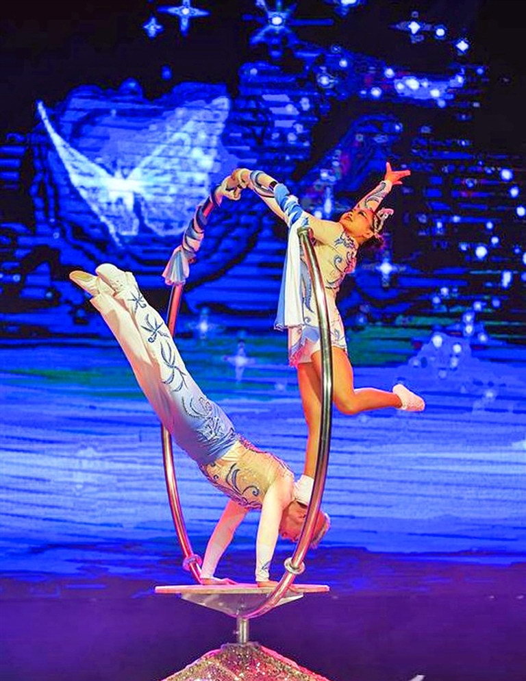 在国际舞台频频斩获大奖的遂宁市杂技团节目《熠熠生辉·顶碗》。全媒体首席记者 钟敏 摄