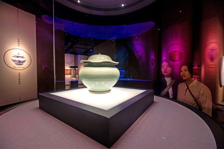 南宋龙泉窑青釉荷叶盖罐。全媒体记者 吴奉家 摄