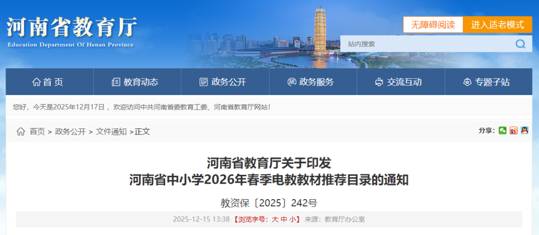 河南省中小学2026年春季电教教材推荐目录并提出相关要求↓↓↓
