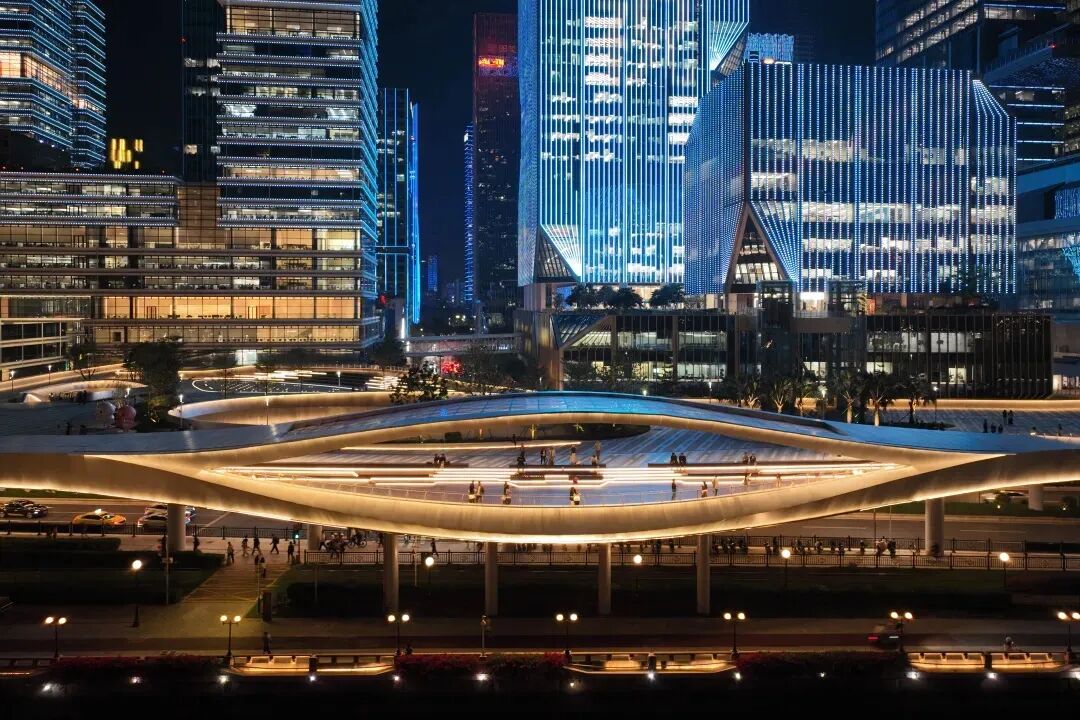 立体平台二层打造园林小品、休憩平台、露天剧场等文化生活设施,以“空中花园”的姿态,提供公共活动空间。