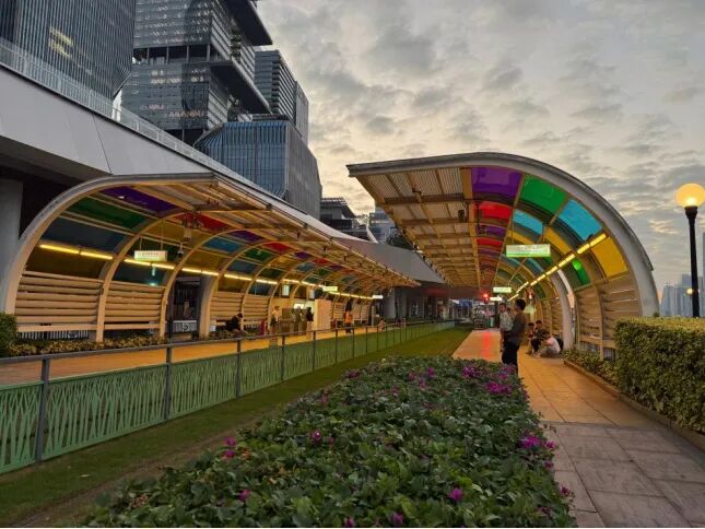 交通工程横卧阅江西路,南牵唯品会、阿里巴巴、腾讯,北挽江岸线、海珠有轨电车,东至华南快速西侧绿地,西接水景公园。平台总面积约1.6万平方米,东西全长约500米,南北最宽处宽约120米。