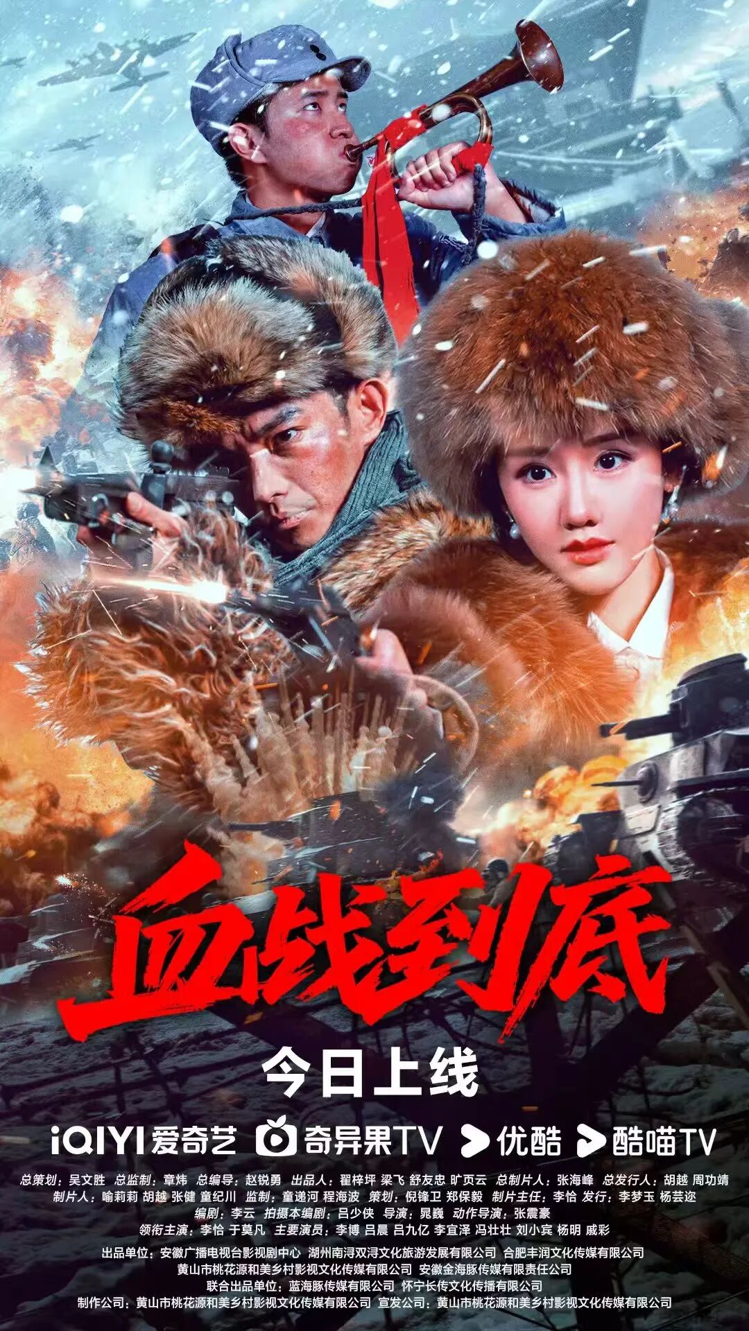 12月17日,纪念中国人民抗日战争暨世界反法80周年的抗日抗战电影《血战到底》在爱奇艺、优酷双平台上线播出。这部电影由安徽广播电视台影视剧中心与湖州南浔双浔文化旅游发展有限公司、合肥丰润文化传媒有限公司、黄山市桃花源和美乡村影视文化传媒有限公司联合出品。