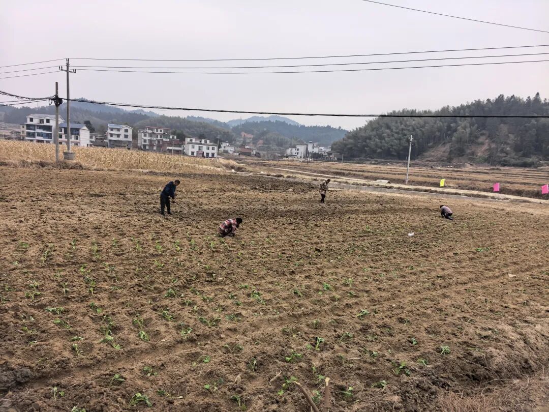 白筱村的田地里种植冬季作物。
