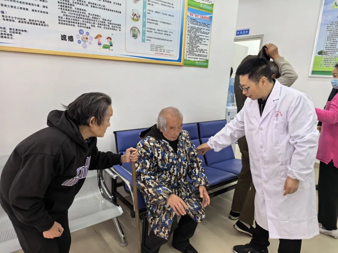 党群服务中心的桌子上放着基本医疗保险门诊慢特病政策解答,工作人员正在给居民宋大爷讲解报销事项。医疗卫生服务站医护人员正给居民黄奶奶的老伴检查腿部关节,告诉老人怎么吃药。七十多岁的黄奶奶说:“这里的医生很贴心。”针对冬季流感,卫生站可以为居民提供基本治疗并给安置点群众普及防范知识,遇到紧急情况,从安置点到镇医院仅两公里。