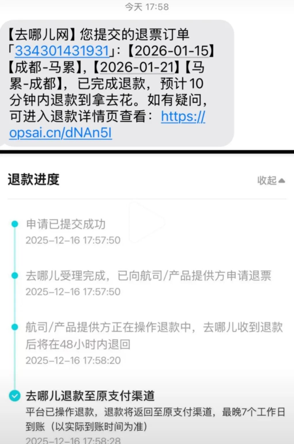 另一售票平台相关人士告诉记者,平台同样收到马尔代夫航空公司消息,称机票取消,但未告知具体原因,政策同样为全额退款。若旅客需进一步咨询,可直接联系航司。