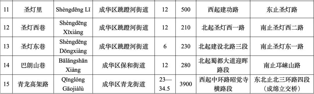 命名道路涉及成都高新区石羊街道,锦江区狮子山街道、牛市口街道、东湖街道,青羊区苏坡街道,金牛区营门口街道,成华区跳蹬河街道、保和街道、青龙街道。