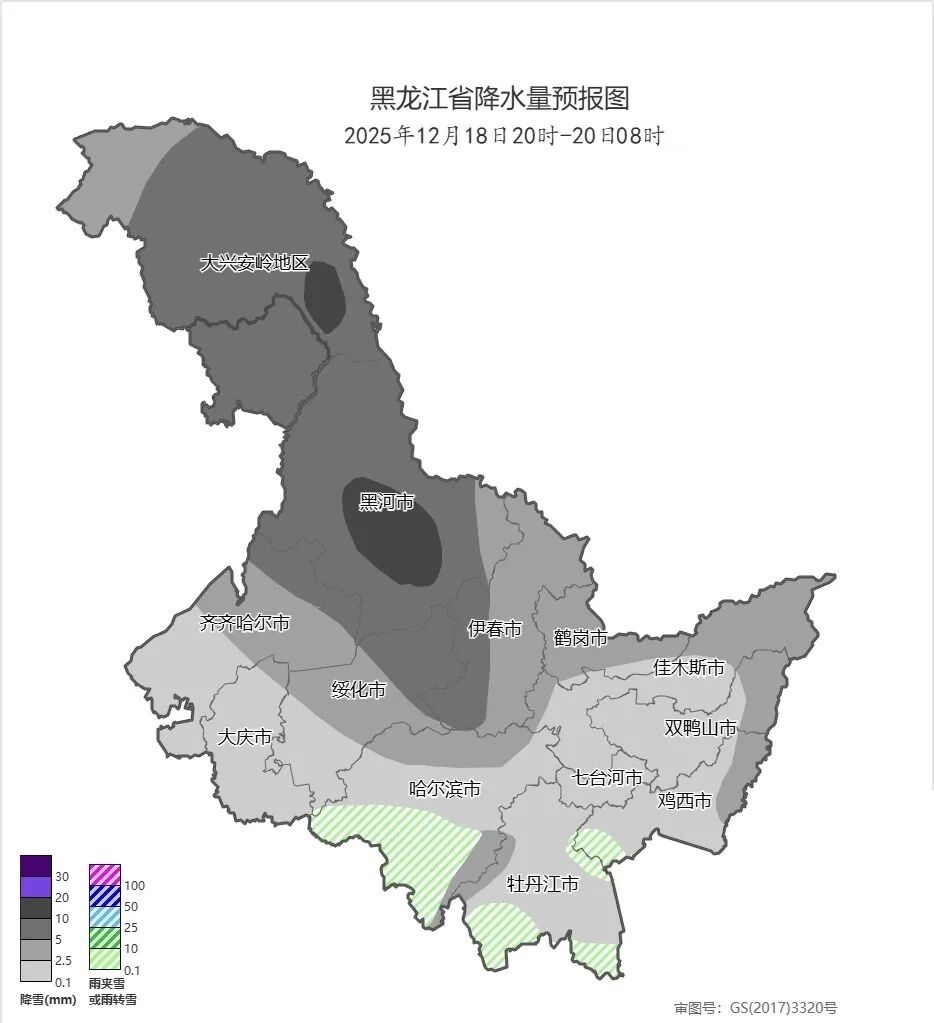 黑龙江省2025年12月18日20时-20日08时累计降水量预报图