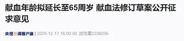 国家卫生健康委同时发布了《中华人民共和国献血法(修订草案征求意见稿)》的相关解读, 《征求意见稿》对献血者年龄和采血间隔进行科学调整。主要基于医学科学的进步与国内实践验证,以及国际通行做法考虑的: