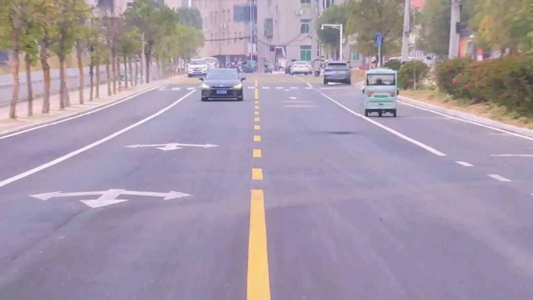 改造后的道路,交通标线清晰醒目,两车道开阔平整,两侧路灯整齐伫立,给镇区面貌带来焕然一新的变化。“以前早晚高峰接送孩子,经常堵得水泄不通。”家住校园路东侧的李阿姨表示,如今两车道宽敞顺畅,人行道、非机动车道分离,家长和学生步行更安全了。