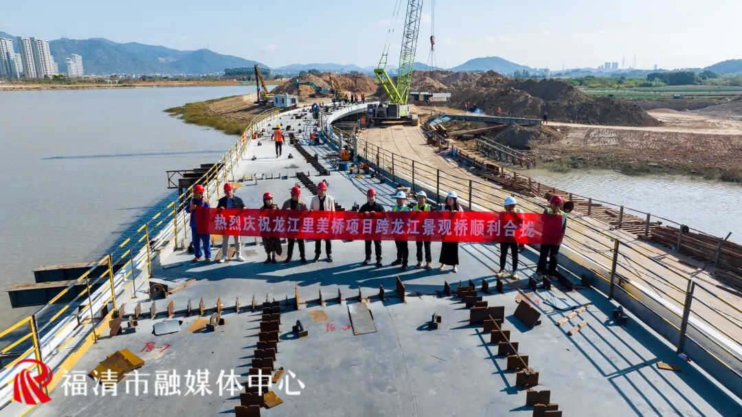 12月17日,备受市民关注的福清东部新城人行景观桥——龙江里美桥项目举行跨江桥梁吊装合龙仪式。随着跨江主景观桥最后一片箱梁精准落位,这座串联城市生态与民生需求的重要桥梁正式进入最终建设阶段,预计将于春节前完工并投入使用。