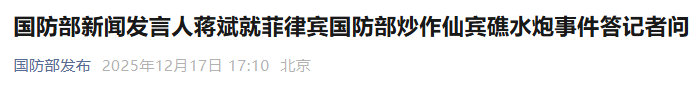 记者:12月16日,菲律宾国防部长在社交媒体平台发表声明,诬称中国海上管控力量在仙宾礁附近海域对菲渔民采取“危险且不人道”行为,否认菲渔民持刀威胁中国海警等。请问中方对此有何评论?