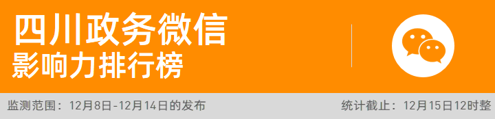 榜单整理了目前四川地区政务微信公众号排行情况,由新榜提供数据支撑,由四川发布在四川地区独家权威发布,包括省直部门、市(州)、县(区、市)三大类,每周发布。