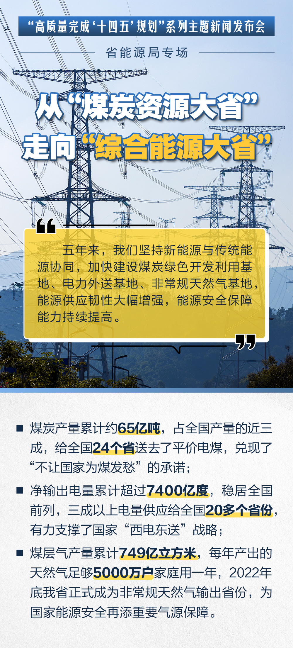 “高质量完成‘十四五’规划”系列主题第二十二场新闻发布会(省能源局专场)17日举行。从五个“走向”看山西“十四五”期间能源高质量发展情况。
