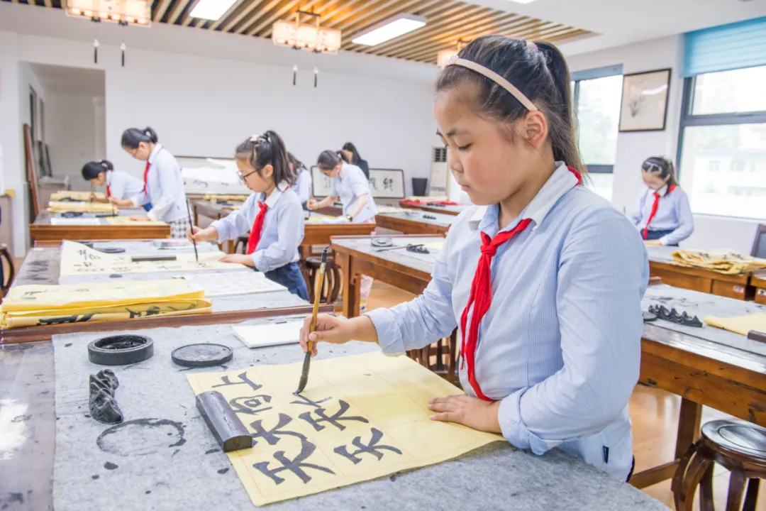 学生在练习书法