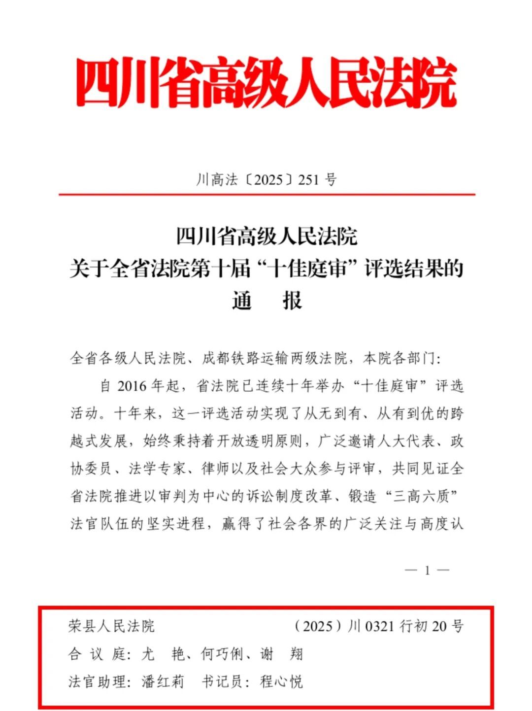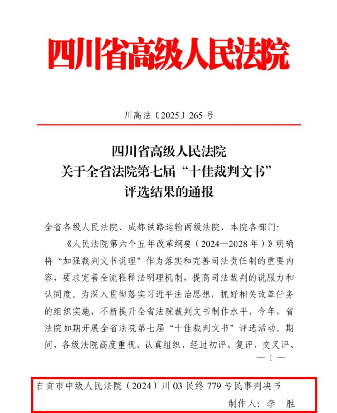 近日,四川法院第七届“十佳文书”与第十届“十佳庭审”评选结果公布,自贡市中级人民法院表现突出,一份裁判文书与一场庭审入选,揽获两项“十佳”荣誉。
