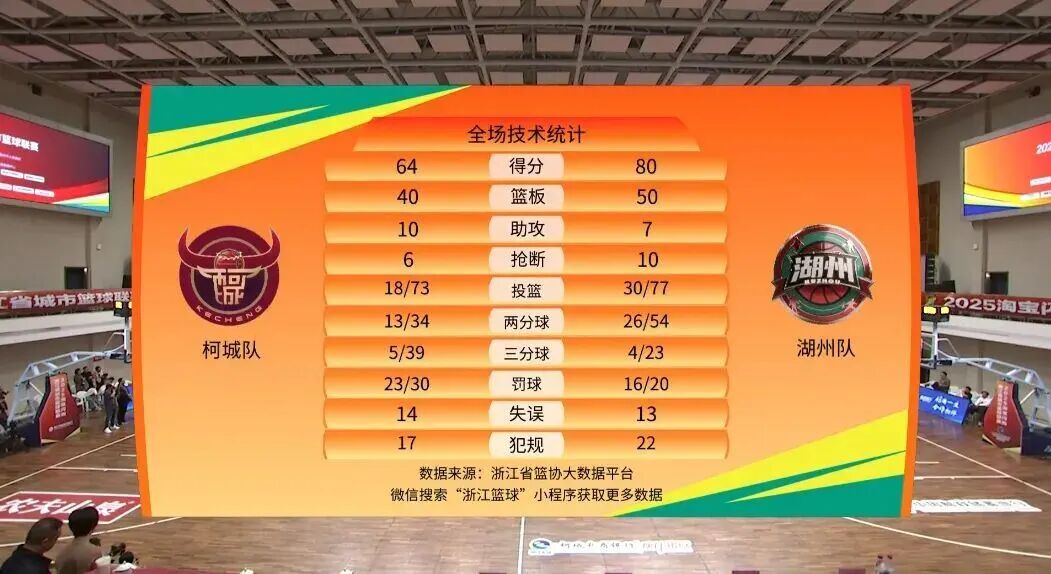 图自浙江省篮球协会柯城VS湖州64:80