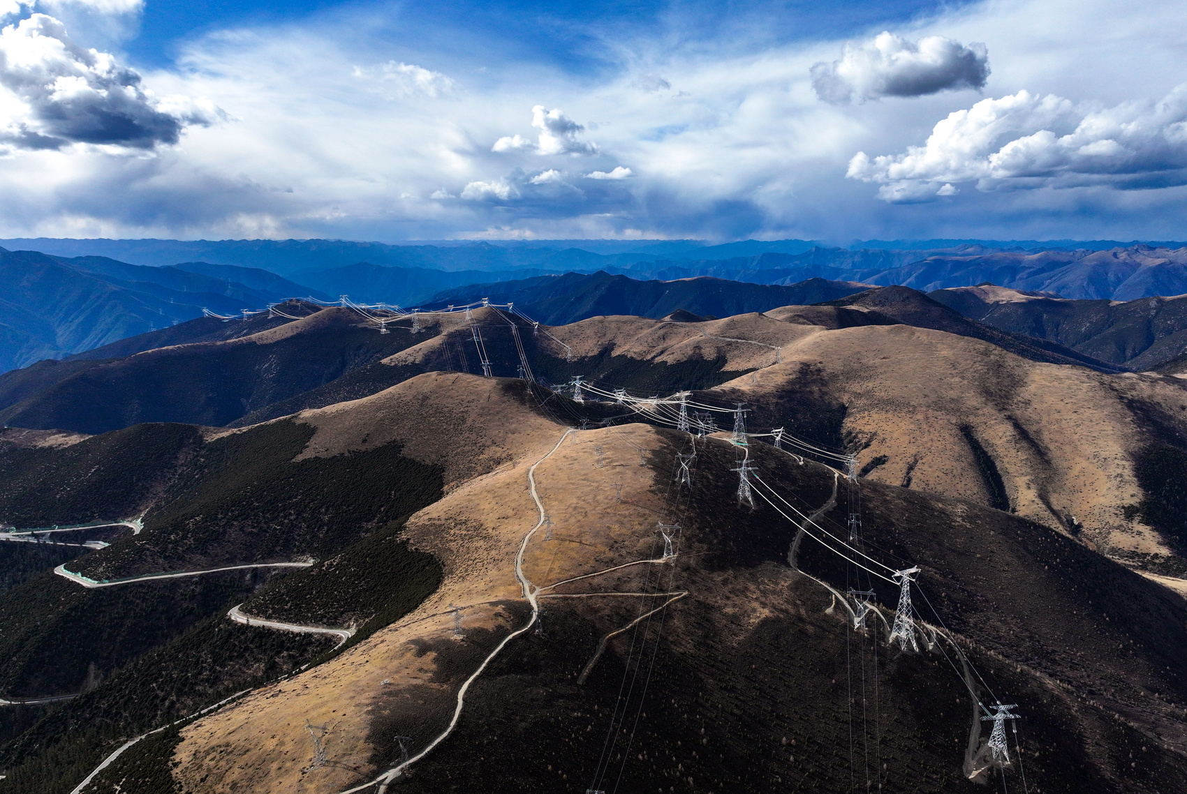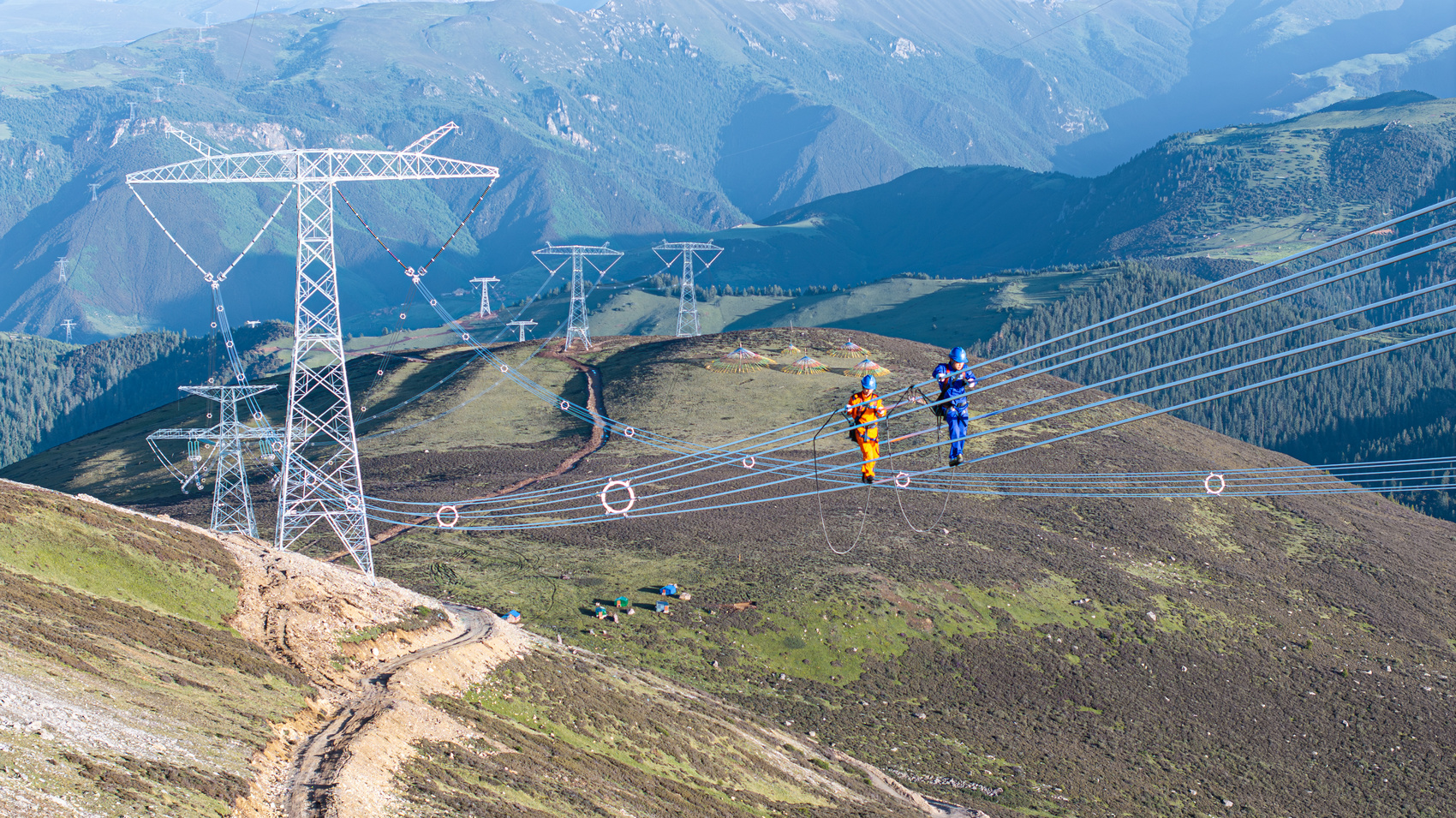 金上—湖北特高压工程是首个深入川藏高原腹地的特高压工程,直面地域与技术的双重“无人区”。送端换流站海拔3720米,线路最高海拔超4800米,建设环境面临高寒缺氧、地质复杂、有效施工期短、生态脆弱等极端挑战。各参建单位克服重重困难,跨越长江,翻越横断山脉,挺进川藏高原腹地,圆满完成工程建设任务。在工程建设难度最大的四川段,线路穿越横断山脉,途经林区覆盖率超70%、坡度超40度的陡峭山地。建设团队采用高原专用机械设备,通过组合流动起重机方式组塔,按期完成最高塔的组立,创造了世界最高海拔特高压工程施工纪录。工程牛背山段穿越27公里无人区,山路狭窄且崎岖,地形呈“刀背”状。建设者们架设货运索道82条,借助骡马、运输车、“爬山虎”、挖掘机等辅助运输塔材物资,多点并进成功解决了运输难题。
