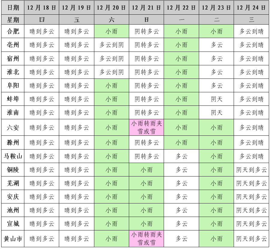 安徽省气象台预计,18日至19日全省晴天到多云。但20日至23日安徽省有降水过程,其中20日夜里和21日白天山区局部有雨夹雪或雪。