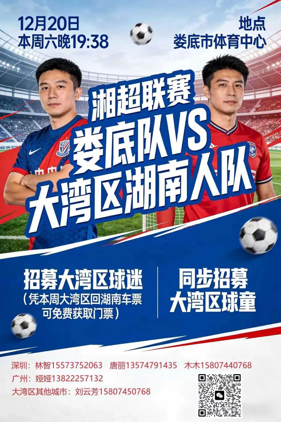 12月20日19∶38,在湖南省娄底市体育中心,大湾区湖南人足球队将迎来湘超友谊赛第二战,对阵湘超淘汰赛第五名娄底队。