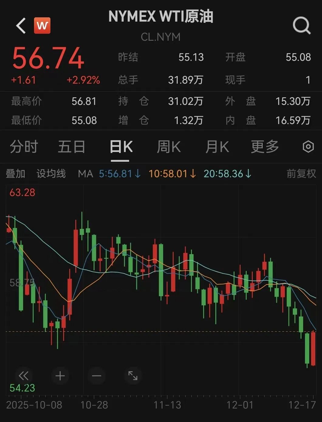 NYMEX WTI原油指数反弹,涨幅接近3%,此前指数跌至年内新低。