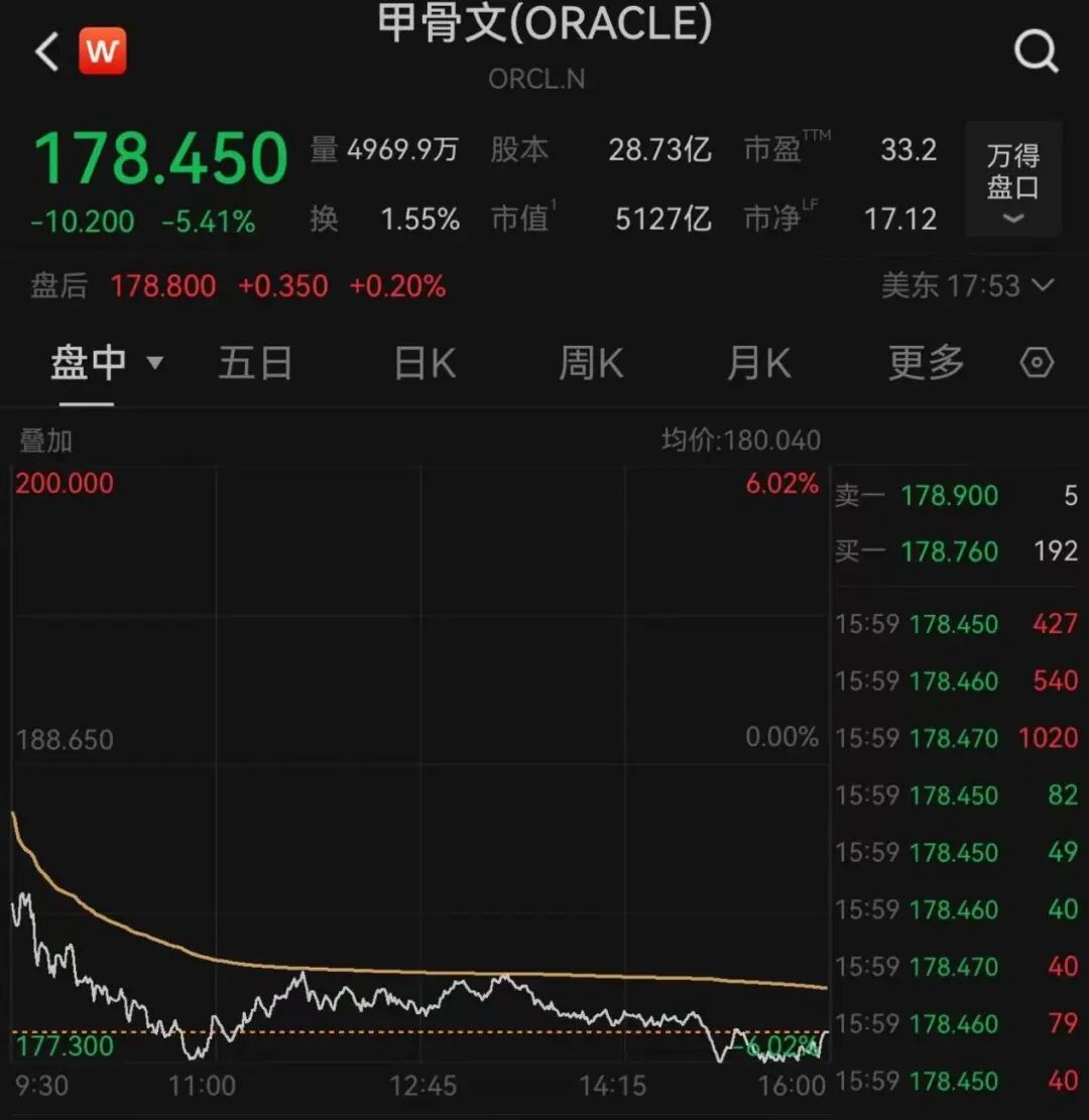 有市场消息称,甲骨文的一位主要投资方退出了其一个数据中心项目。甲骨文股价下跌超5%,引发科技股集体下挫。