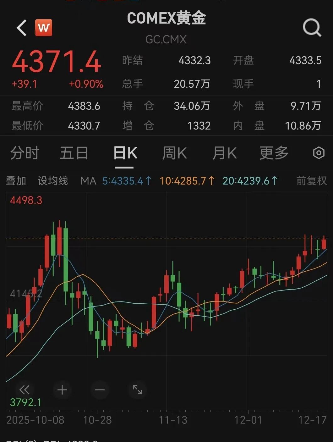 持续的地缘政治风险以及强劲的需求,共同推动贵金属走高。12月17日收盘,伦敦现货黄金价格上涨0.82%,COMEX黄金期货价格上涨0.9%。