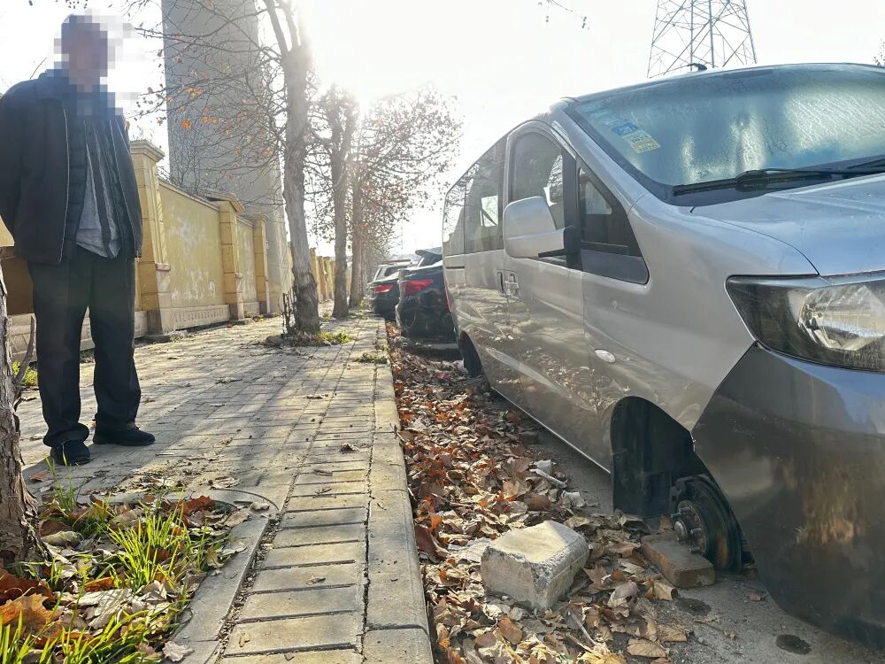 近日,在西安市灞桥区祥云路保利熙岸林语小区南门口,一条东西方向的路上,多辆车车轮被偷。有的车主因长期将车停放在此,直到派出所民警打电话才知道此事。