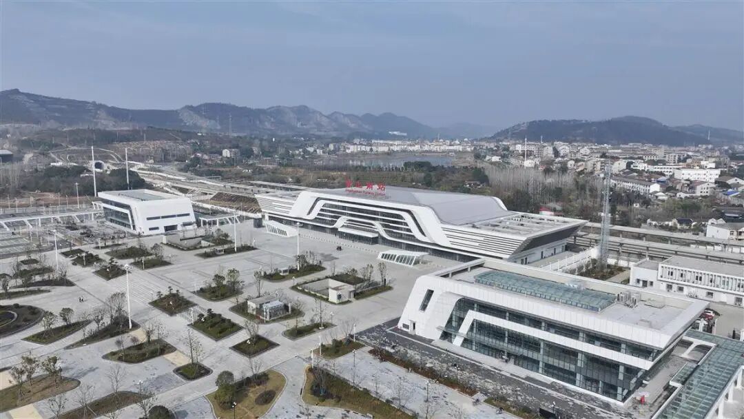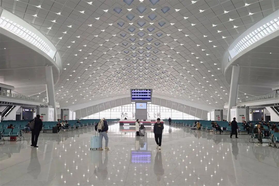 走进京山南站,仿佛撞入“观鸟天堂”。三层流线造型如鸟儿舒展的羽翼,抽象化的“京”字藏身建筑之中,轻盈又富有诗意。