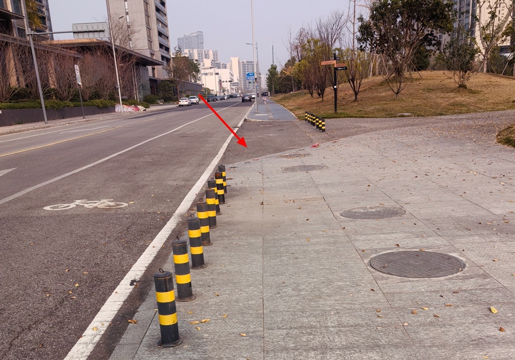 有的入口原来安装了隔离桩,但大部分人为损毁严重,甚至直接被拔掉