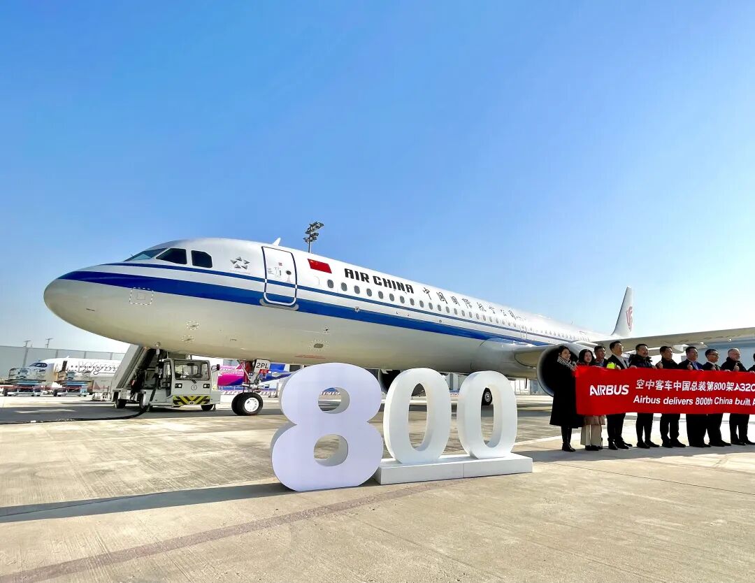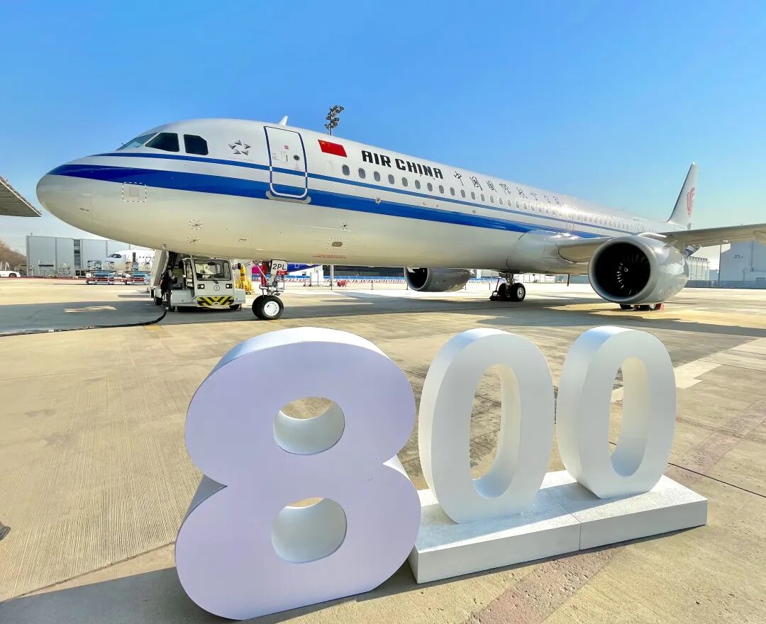 昨天,由空客天津A320系列飞机总装线完成总装的第800架飞机正式交付。该架空客A321neo飞机由中国国际航空公司接收运营。