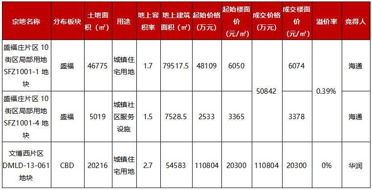 盛福地块住宅土地面积46775㎡,容积率1.7,地上计容建面约79517.5㎡,成交楼面价6074元/㎡;城镇社区服务设施用地土地面积5019㎡,容积率1.5,地上计容建面约7528.5㎡,成交楼面价3378元/㎡;整体溢价率0.39%,最终由海通地产竞得。