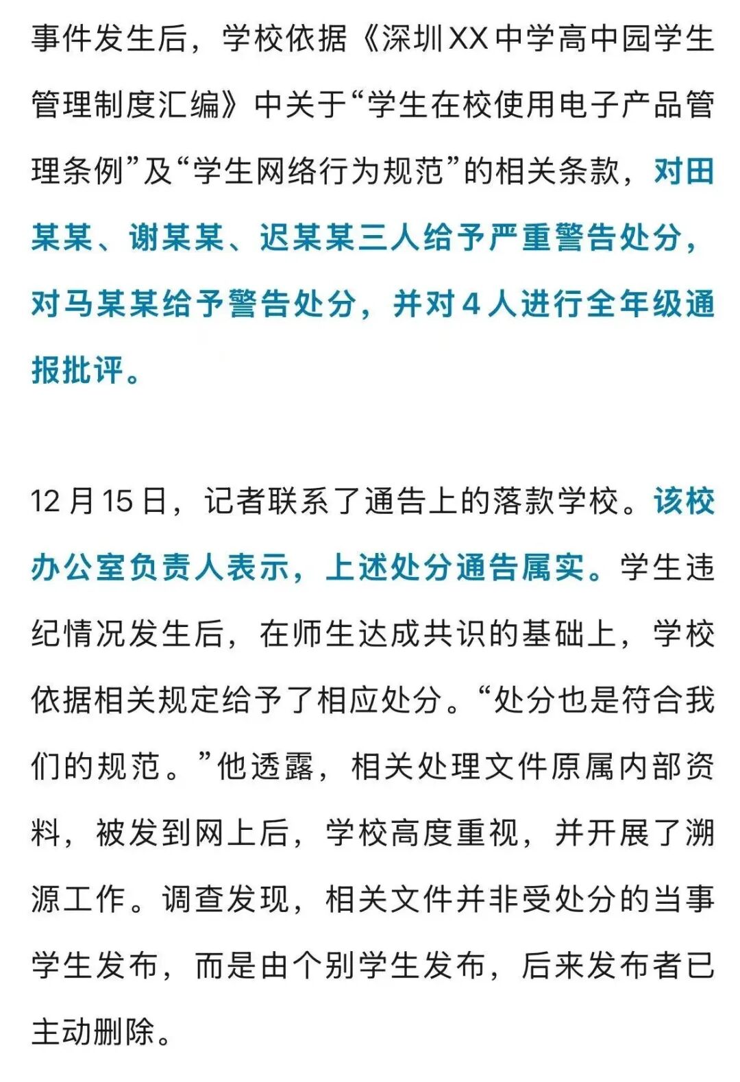 据上游新闻报道,12月15日,记者从该校办公室负责人处获悉,网上流传的通告属实,通告本属内部处理文件,被个别学生发到了网上。