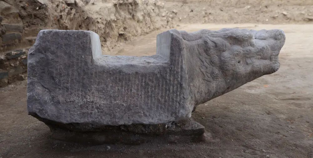 据了解,本年度发掘出土遗物主要出自基址上的倒塌堆积,出土遗物多为建筑材料,包括陶板瓦、筒瓦、瓦当、滴水、脊兽、砖,以及石螭首、栏杆构件等。陶建筑材料多有琉璃器,以绿色琉璃为多。瓦当、滴水纹饰以龙纹为主,凤纹为次。其他遗物中可见大量残塑件,应是建筑或佛像上的装饰品。