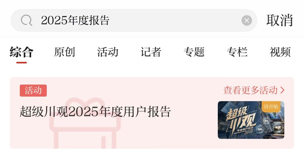 1、川观新闻App首页顶部搜索框,输入“2025年度报告”,点开H5链接即可参与。