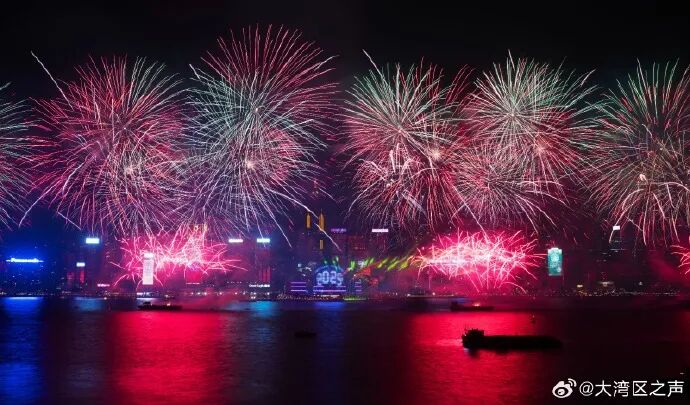 2024年12月31日晚,香港维多利亚港举办跨年倒数烟花汇演。