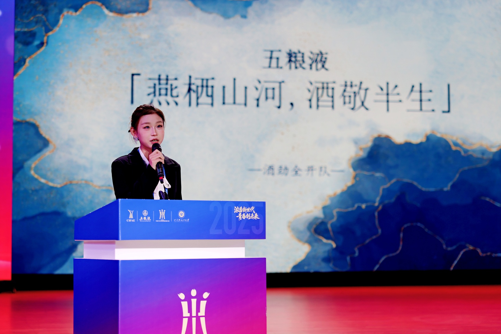 五粮液总工程师杨韵霞代表企业致辞,“五粮液已连续五年支持大赛,期待更多青年通过大赛认识白酒、加入行业,共同书写中国白酒新篇章”。