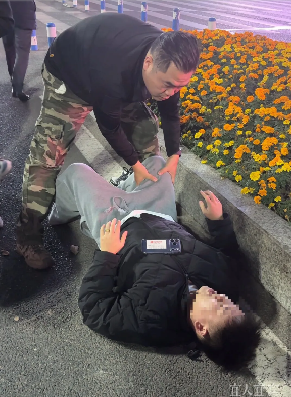 张伟俯身施救的暖心举动