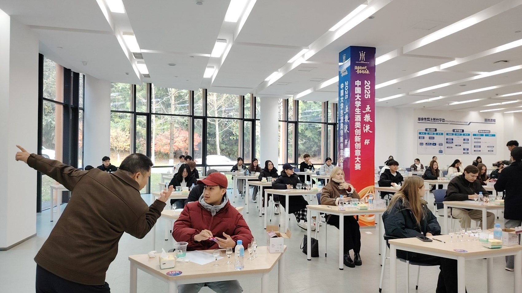 12月17日,在四川轻化工大学宜宾校区举行的2025“五粮液”杯中国大学生酒类创新创意大赛品酒比赛国际赛场,一场特殊的品酒测验正在上演。