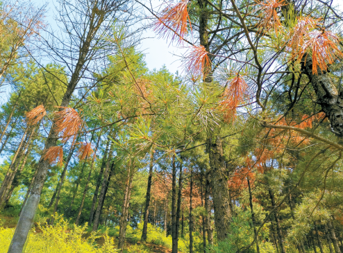 △感染松材线虫病的松树呈现出“红绿相间”的色彩