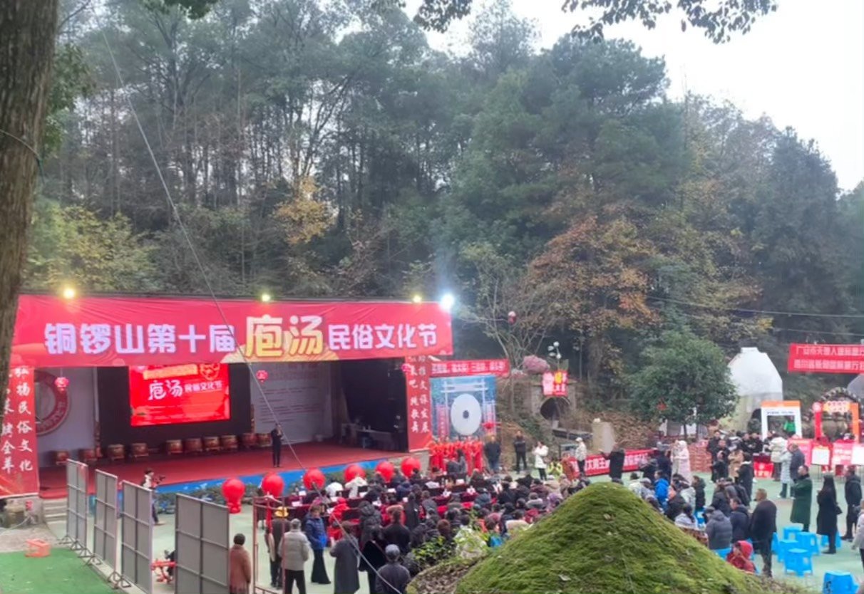 铜锣山庖汤民俗文化节历经10年发展,已从最初的乡村聚会,成长为集民俗展示、旅游体验、农产品销售于一体的综合性文旅品牌。活动不仅为游客提供了沉浸式的年俗文化体验,更通过“以节促销”的形式,有效拉动了本地农特产品的销售,让村民切实受益。据了解,该活动已累计吸引游客超8万人次,带动相关销售超千万元,“铜锣山土猪肉”等品牌知名度显著提升。