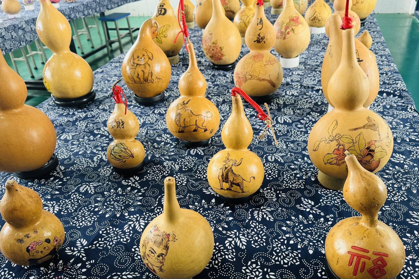 泸县牛滩镇玉峰小学校的葫芦烙画作品。