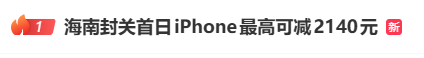 话题#海南封关首日iPhone最高可减2140元# 冲上热搜第一!